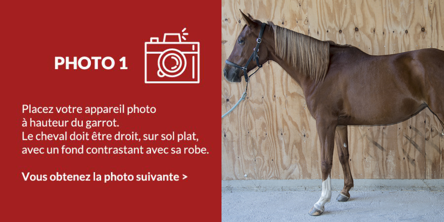 - Une photo de 3/4 vers l’avant afin de voir la ligne du dos du cheval, l’épaisseur de son garrot et son épaule