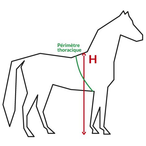 - Le périmètre thoracique, il faut prendre la mesure du tour de poitrine de votre cheval en partant de la base du garrot et en suivant le passage de la sangle.